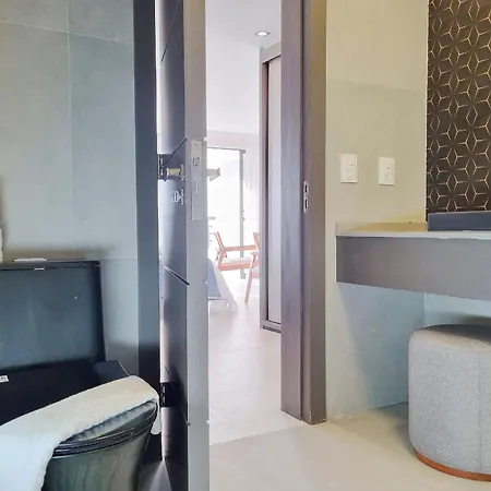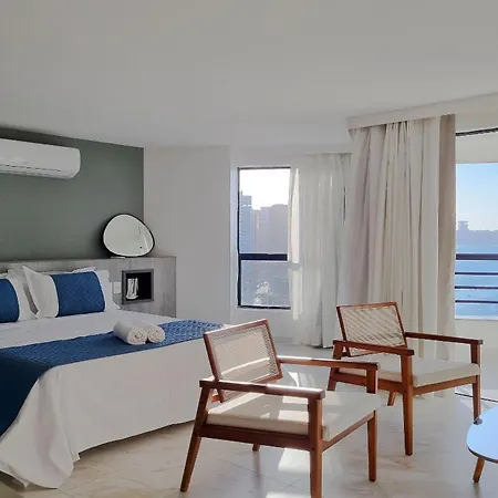 Featuring an outdoor swimming pool, the beachfront 0-bedroom Iate Plaza #1404 - Studio Vista Mar By Carpediem Fortaleza is just steps from Mucuripe Fish Market. Along with a restaurant this 45 m² apartment also has sea vistas.
